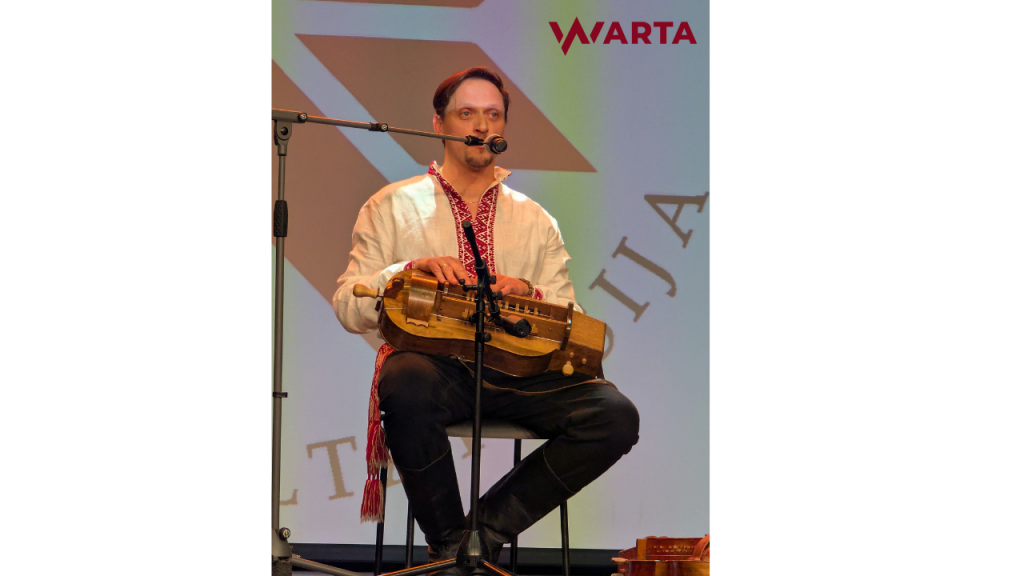 Сяржук Доўгушаў выконвае беларускія песьні на ліры.
