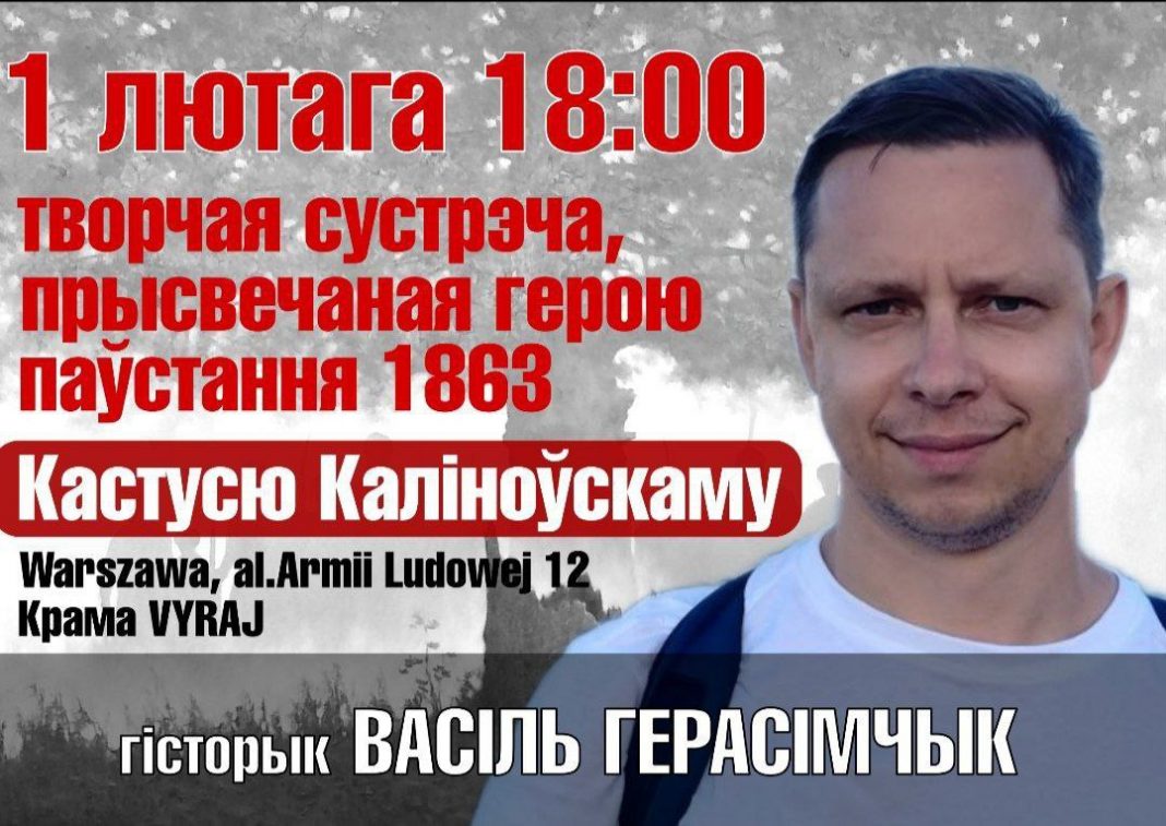1 лютага з нагоды дня Нараджэньня Кастуся Каліноўскага адбудзецца сустрэча з гісторыкам Васілём Герасімчыкам.