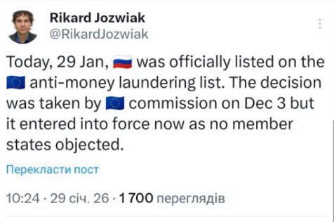 Ад сёньня ўсе расейскія пераводы ў ЭЗ будуць па змоўчаньні лічыцца “падазронымі”