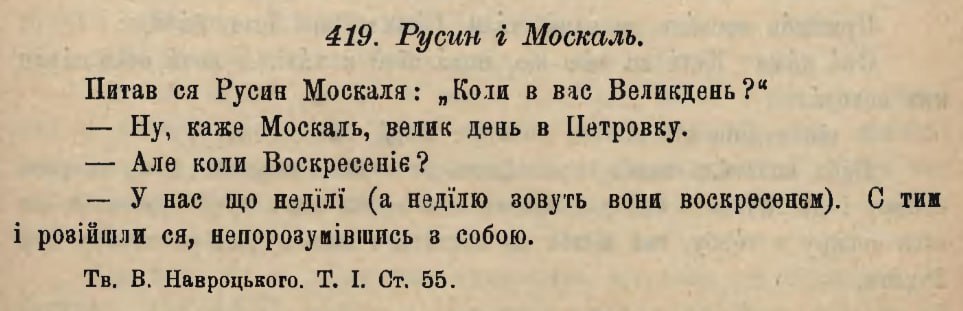 Питав ся Русин Москаля: „Коли в вас Великдень?”