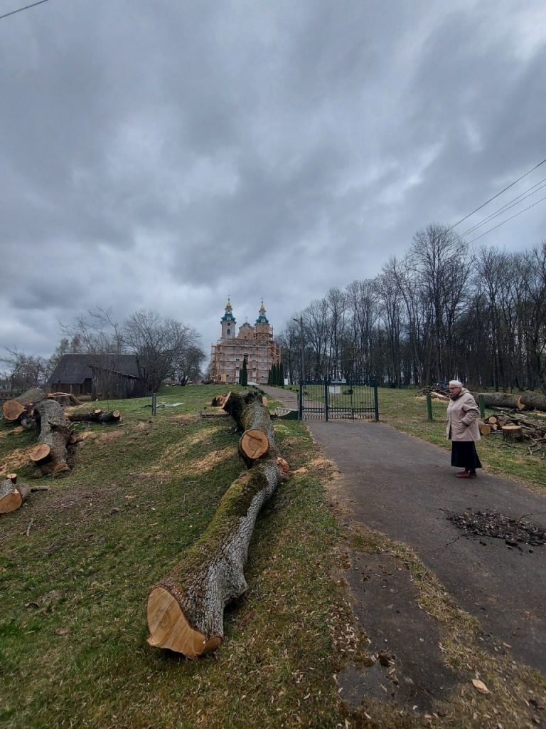 Адбылося гэта падчас рэканструкцыі барочнага храму. Старажытныя дрэвы складалі частку сядзібна-паркавага ансамбля XVIII—XIX стагоддзяў.